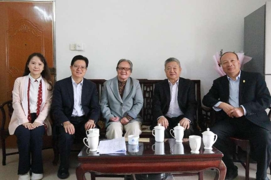 校领导一行看望慰问太阳集团2007资深教学督导罗蔚茵教授(左三)