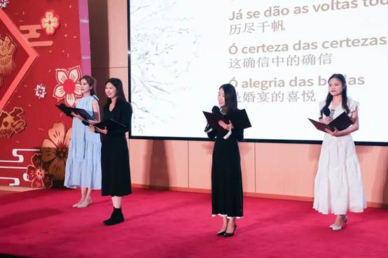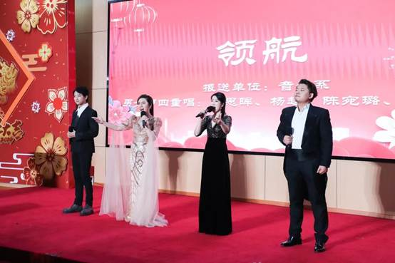 晚会上13个精彩节目轮番上演,各单位教职工以歌声、舞蹈、朗诵等多种形式,为教职工们献上一场视听盛宴,大家欢聚一堂,共同庆祝新年到来,展望美好未来。