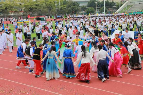 田径场上,千余名广州新华师生在绿茵场上肆意挥洒汗水,感受体育运动的无穷魅力,彰显出广州新华师生健康向上的精神风貌。