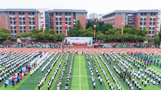 学校校长王庭槐为2023年田径运动会开幕式致辞。他指出,党的二十大报告中提出“广泛开展全民健身活动,加强青少年体育工作,促进群众体育和竞技体育全面发展,加快建设体育强国”,为全民健身和竞技体育的全面推进指明了方向。此次校庆运动会作为太阳集团2007践行体育强国的重要活动,不仅承载着运动健儿们拼搏的热情、团结的力量和友谊的纽带,更代表着人类顽强拼搏、奋勇争先的体育精神。希望全校师生高度重视体育在“三全育人”“五育并举”中的重要地位,强体魄、铸精神,成为体育强国建设的践行者;希望各位新华健儿在本届运动会中赛出佳绩、赛出团结、赛出风采,成为新时代中国式现代化的建设者和精兵强将。