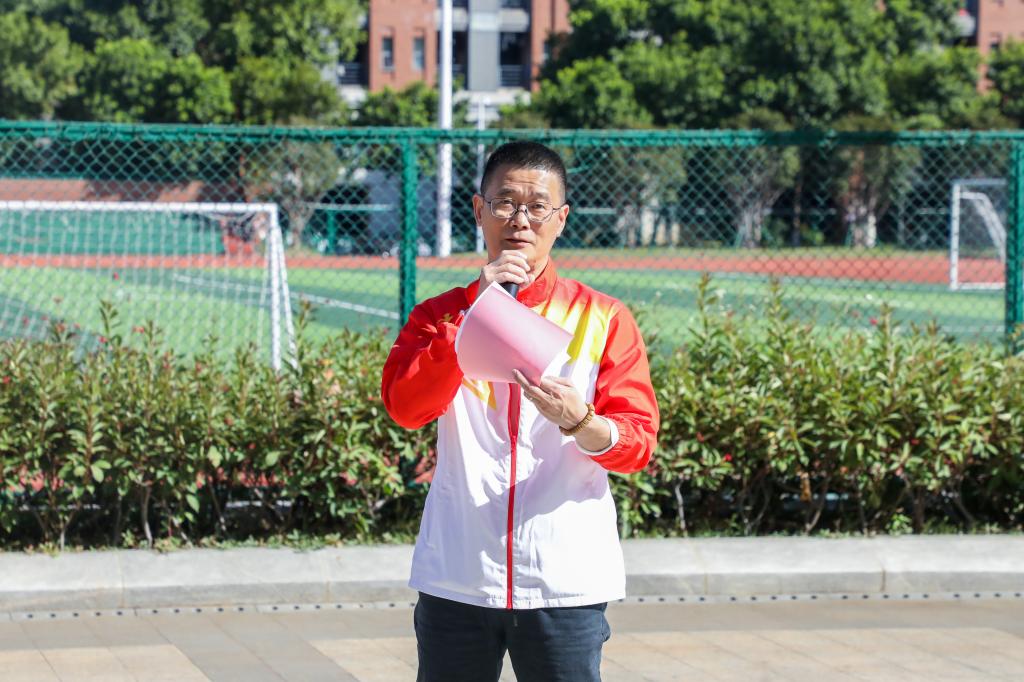 随后,林源主席宣读本次活动评分细则和注意事项。在林主席的宣布下,“2024年校庆环校跑”活动正式拉开帷幕。教职工们满怀激情,迈出坚定的步伐环绕校外一周,向终点进发。