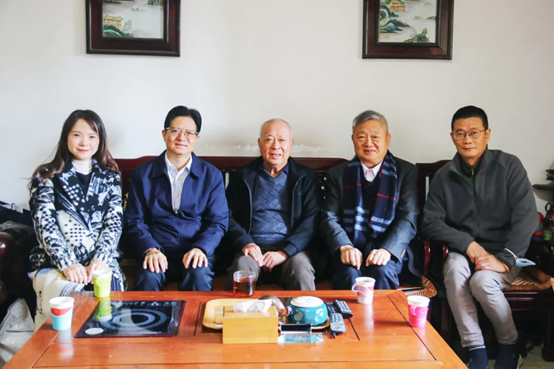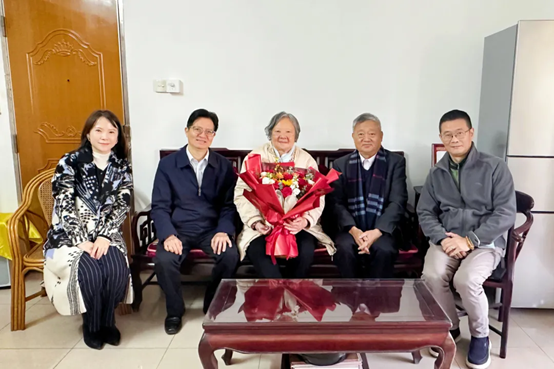 王庭槐(右二)、郝登峰(左二)一行看望慰问中山大学原副校长徐远通教授(中)
