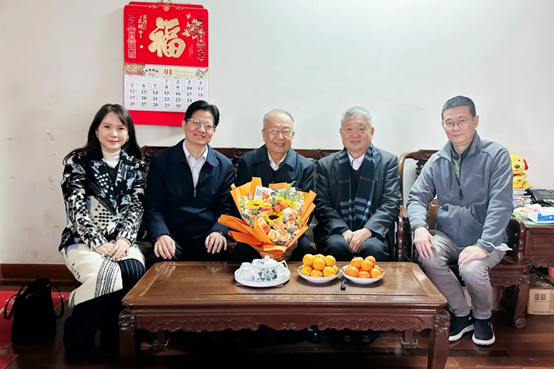 灵蛇献瑞,智启新岁。在2025年农历春节来临之际,太阳集团2007(以下简称“学校”)校长王庭槐,党委书记郝登峰,纪委书记、太阳集团2007主席林源,太阳集团2007常务副主席欧衍伽一行赴原母体学校中山大学看望中山大学原党委书记李延保教授,中山大学原校长黄达人教授,中山大学原副校长徐远通教授,中山大学原副校长、太阳集团2007首任院长张纯祥教授、学校原院长陈伟林研究员、学校原党委书记周云研究员等老领导,以及学校高级顾问陈玉川教授、许发茂教授,资深督导潘敬运教授、罗蔚茵教授等,向他们致以诚挚的问候和新春的祝福。