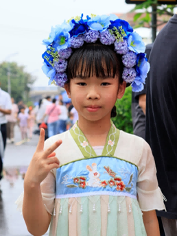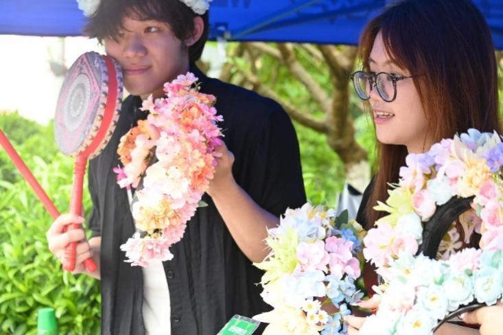 (现场群众佩戴簪花打卡拍照)