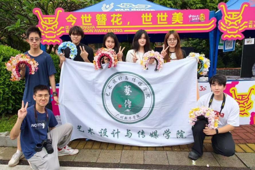 我院2023级服装与服饰设计专业学生在廖煜容老师的带领下前往东莞市万江滘联社区正丫湾龙舟民俗文化村开展实践活动。此活动旨在向大众介绍中国非遗簪花文化,推动非遗文化的传承,同时帮助学生在实践中进一步的自我发展。