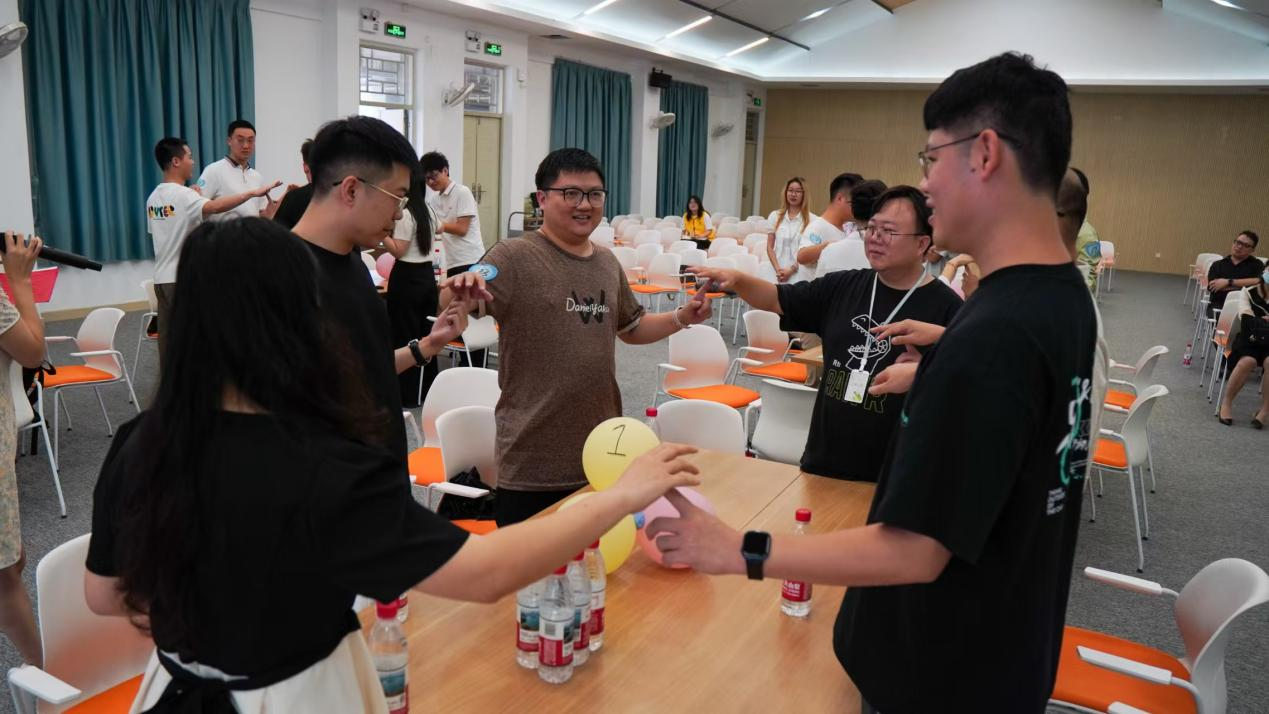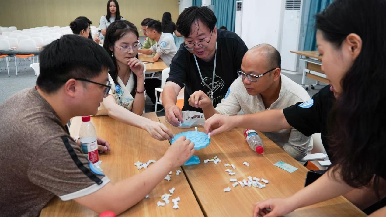 活动现场气氛热烈,教职工们通过"爱的初印象""抓手指""心跳传递""太空人平衡"等趣味游戏迅速拉近距离。中场茶歇环节,伴随着悠扬的《凤求凰》古筝演奏,教职工们进行了愉快的自由交流。随后的换位交流环节和趣味游戏进一步增进了互动,现场洋溢着温馨融洽的氛围。