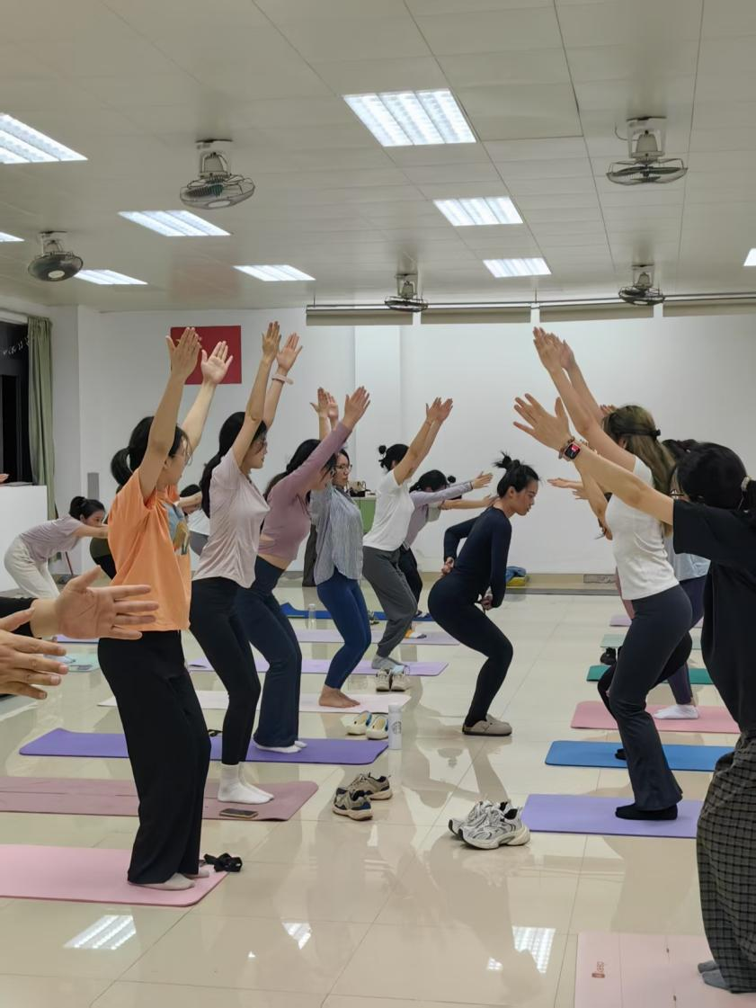 培训班邀请了教职工培训师资储备库的瑜伽老师泽华进行授课,吸引了众多教职工的积极报名,受到了大家的广泛好评。