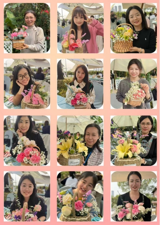 活动现场,工会特邀了专业的花艺师进行现场教学,老师们积极参与,边学边练,将手中的花材、绿植进行修剪、整枝,依据个人的艺术美感和色彩搭配,运用智慧和巧手创造出一件件各具特色的插花艺术作品,并用镜头定格下这一份专注而美丽的画面。一篮篮精致的花束编织成了一幅幅动人的画卷,给参与活动的老师们带来了无比的喜悦。